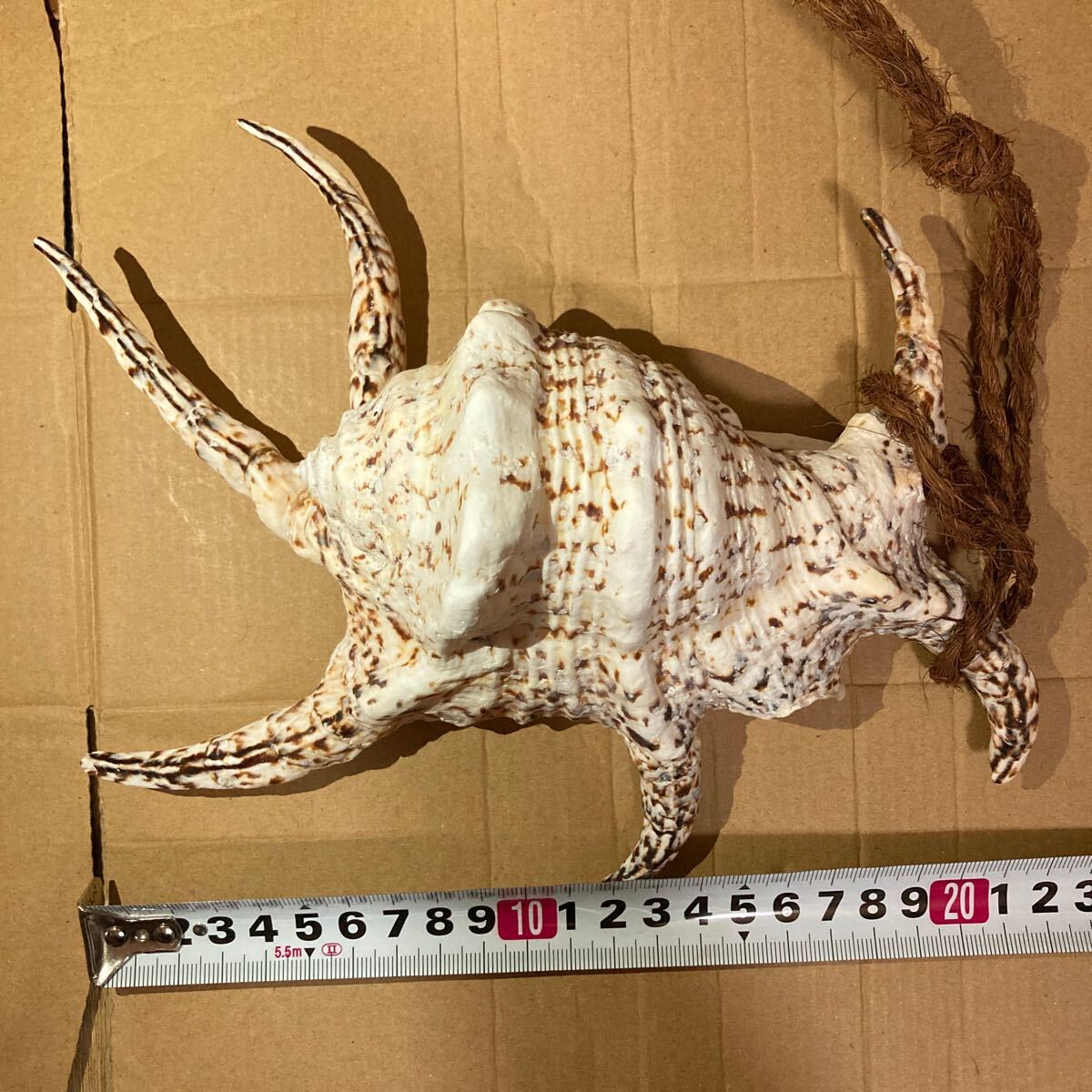 > YK-3130 水字貝 紐付き 約460g スイジガイ 約21cm×約16cm 貝殻 インテリア オブジェ 魔除け 沖縄 お土産 飾り 水槽