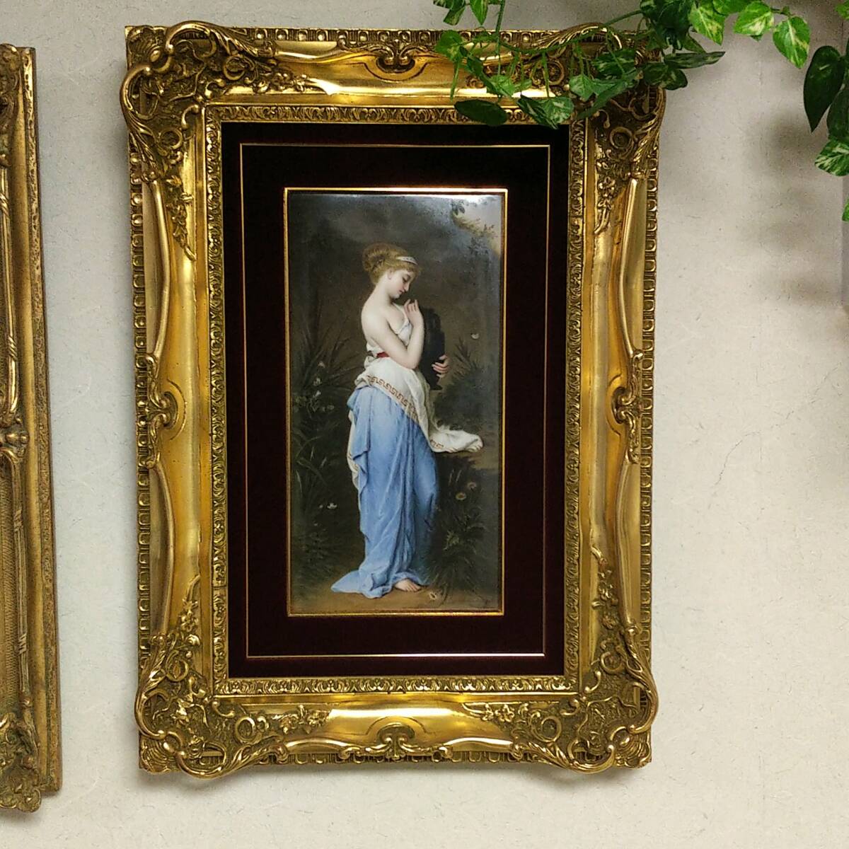> kps 即納品!! 運送保険付き ベルリン王立磁器製陶所 KPM真作 19世紀 ドイツ 陶板画 壺を持つプシュケ 陶板 KPM陶板