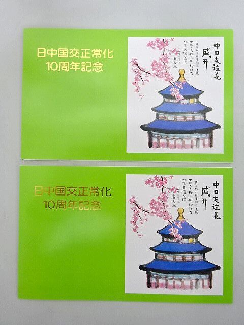 - A-9 未使用 中国切手 日中国交正常化 10周年記念 1982年 切手 台紙 2セット
