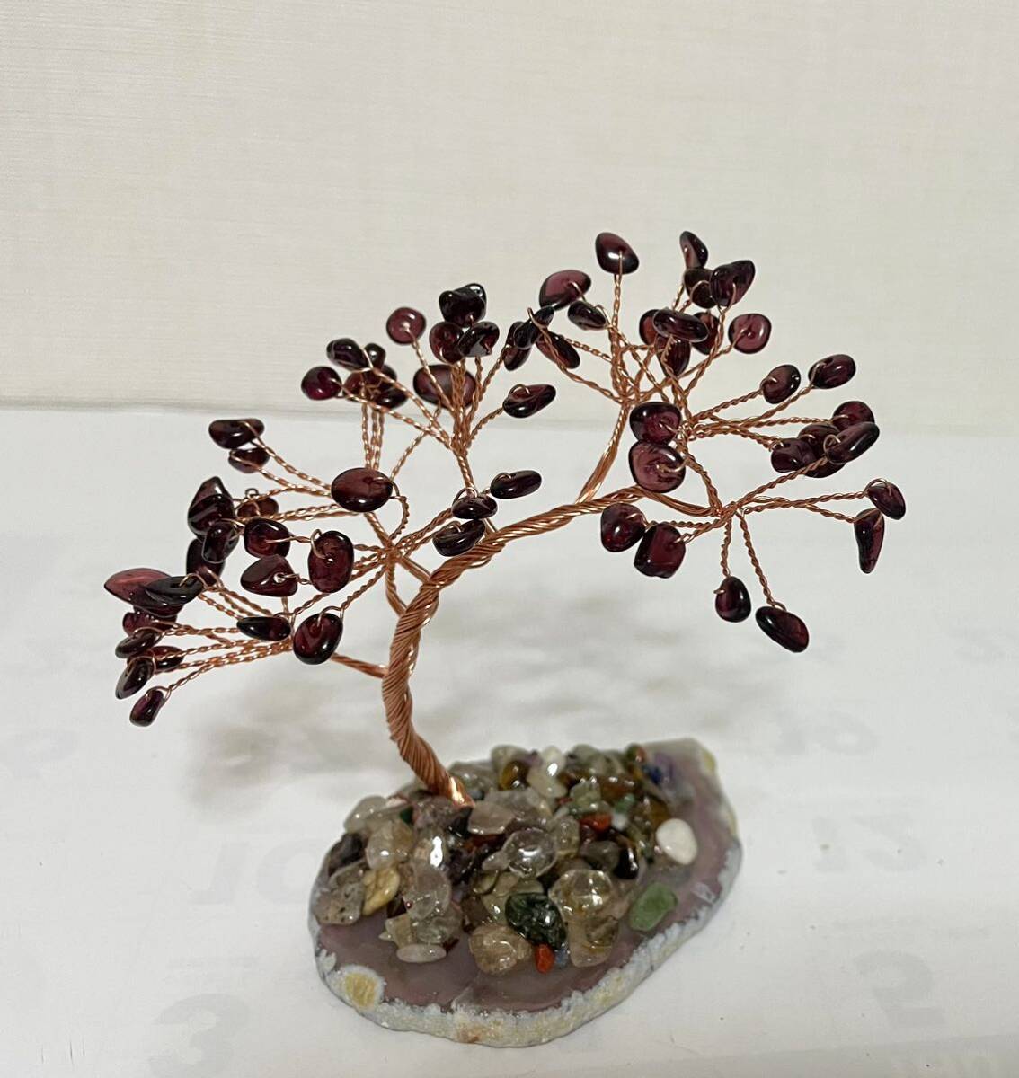 - 招財樹 ストーンツリー ガーネット 恋愛運 レッド クォーツ パワーストーン ラッキー 天然石 置物インテリア 柘榴石