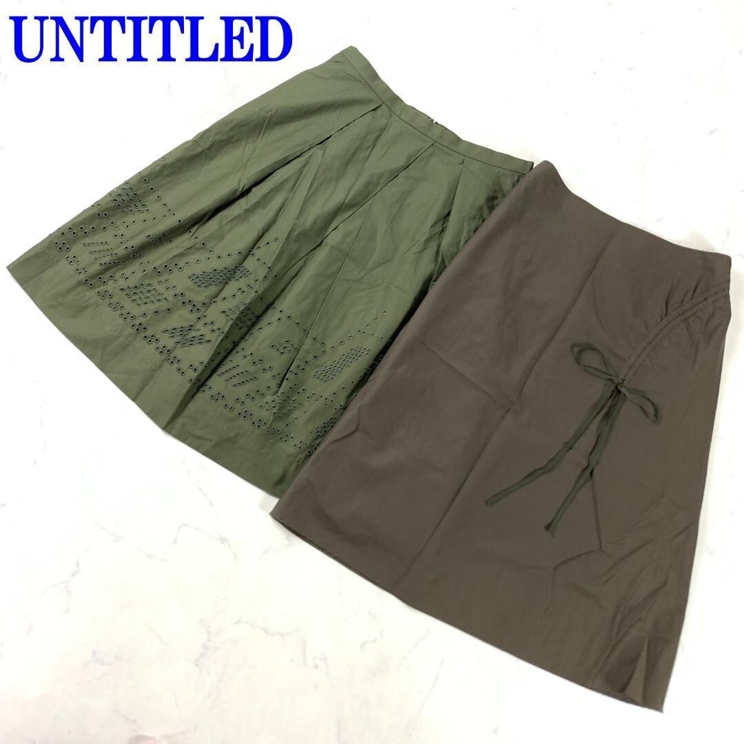 > アンタイトル 2枚セット ロングフレアスカート カーキUNTITLED カジュアル タック入りフレア コットンレース刺繍 2 C1271