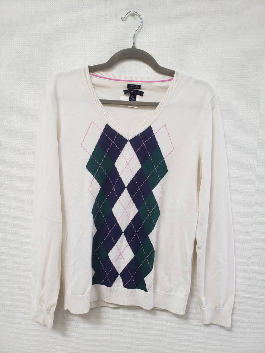 > TOMMY HILFIGER トミーヒルフィガー ニット セーター スウェット USED 白紺緑ピンク L アーガイル