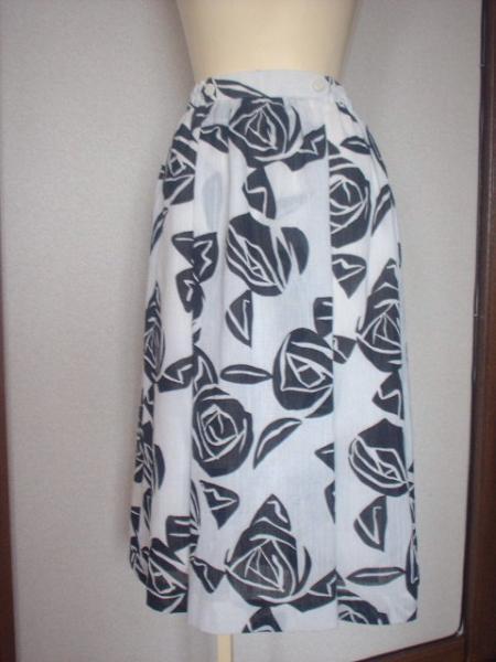- イトキン 白に黒のバラ柄のスカート