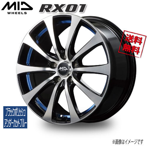 マルカ M.I.D RX01 ブラックポリッシュ/アンダーカットブルー 15インチ 5H100 6J+45 4本 67.1 業販4本購入で送料無料