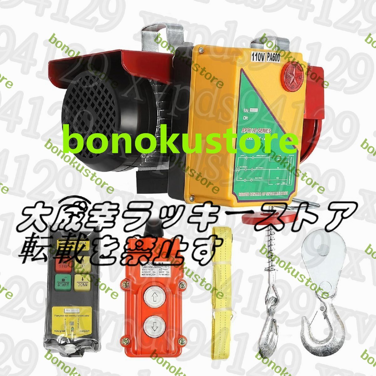 > 電動ウインチ 電動ホイスト 小型クレーン 携帯型で ウインチ 巻き上げ機 過巻き防止機能 吊り下げタイプ 110v 三つ制御方法 荷役 1800LBS