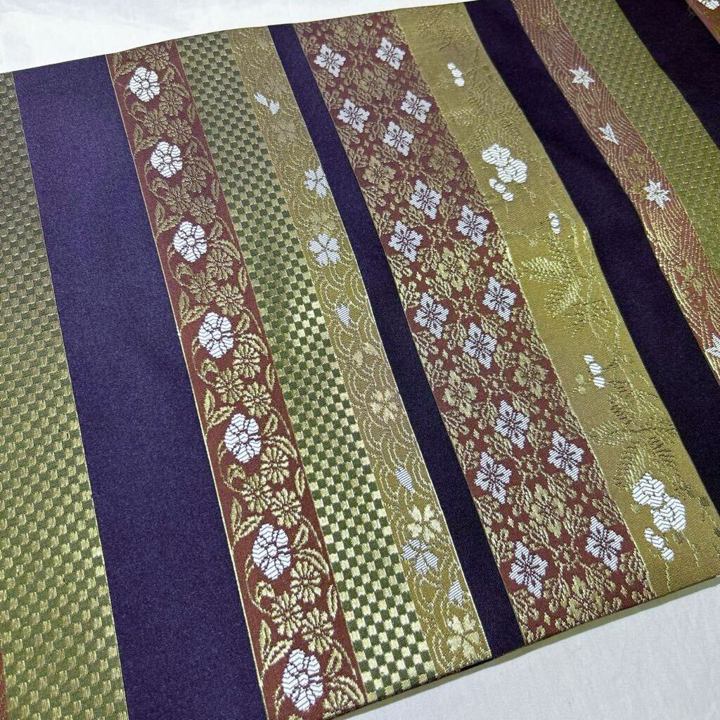 > ★美品★正絹 名古屋帯 九寸 織り 金糸 名古屋仕立て 着物 紫黒色 紫系 約348cm フォーマル 色無地 染めの小紋 上品 秋 冬 (09056並