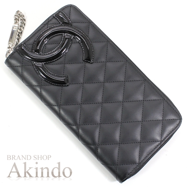 > シャネル 長財布 カンボン ライン カーフレザー エナメル 黒 ブラック ピンク ラウンドファスナー マトラッセ CHANEL レディース
