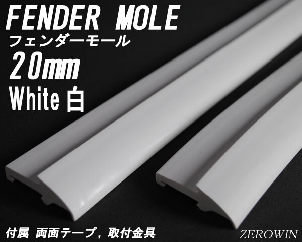 - フェンダーモール20mm幅 ホワイト 白 1.4m×2本入り ドレスアップ はみタイ ツライチ オーバーフェンダー