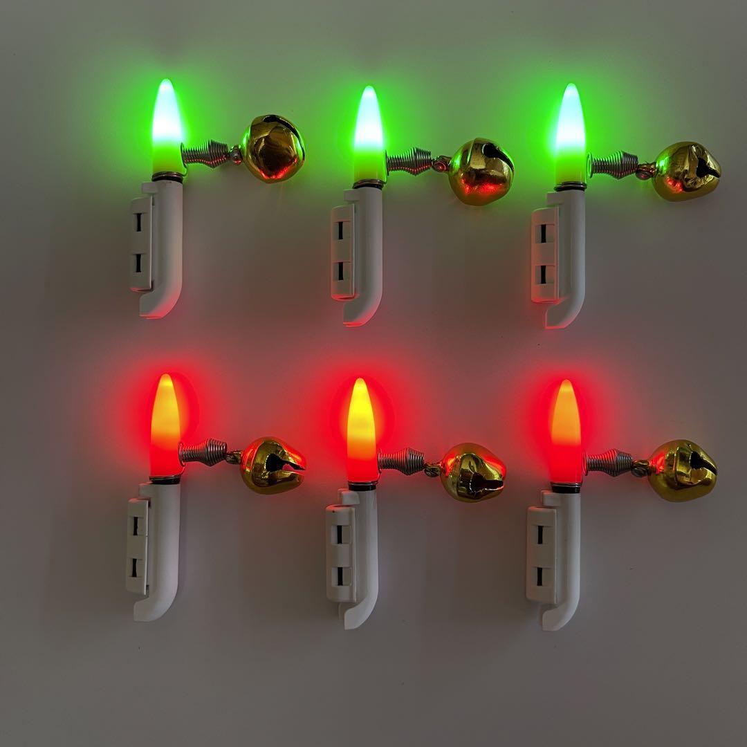 - 竿先ライト(緑色×3個 赤色×3個)アタリ鈴付き 穂先ライト 電池式 磯釣り ブッコミ釣り 夜光 夜釣り グリーン タマン 沖縄