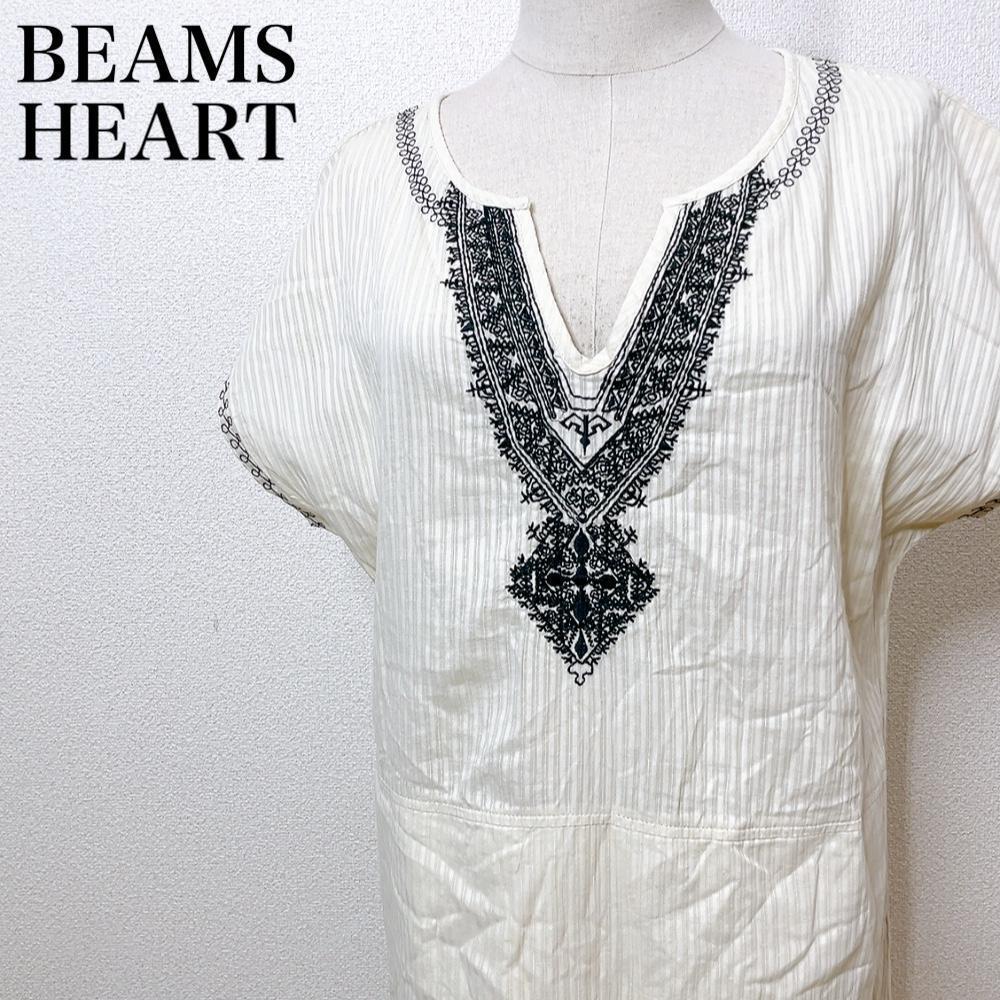 - BEAMS HEART ビームスハート Iライン カジュアル ショートスリーブワンピースチュニック スキッパー 着回し抜群 ストライプ 春夏 ほ39