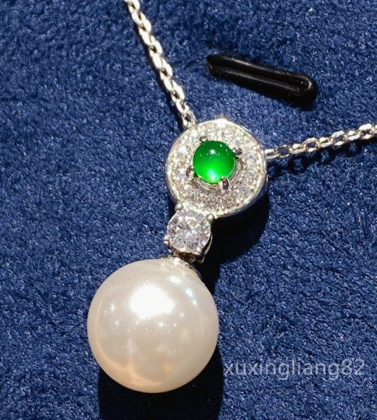 - 新品販売 天然緑玉髓 ヒスイ 大粒パール ペンダントトップ ネックレス ジルコン ピカピカ ジルコン アクセサリー チェーン付き