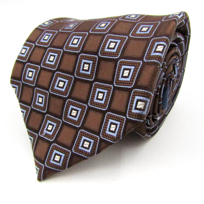 - トミーヒルフィガー ブランド ネクタイ 小紋柄 スクエア柄 格子柄 シルク PO メンズ ブラウン TOMMY HILFIGER