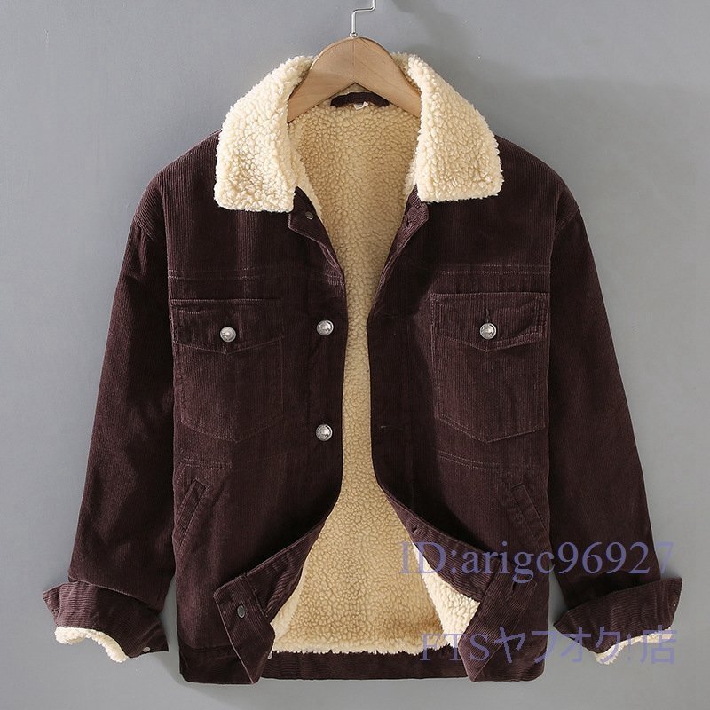 > T810☆新品裏ボアジャケット メンズ* アウター ブルゾン コーデュロイ 防寒着 裏起毛 秋冬 ショートコート ランチコート 珈琲色 M