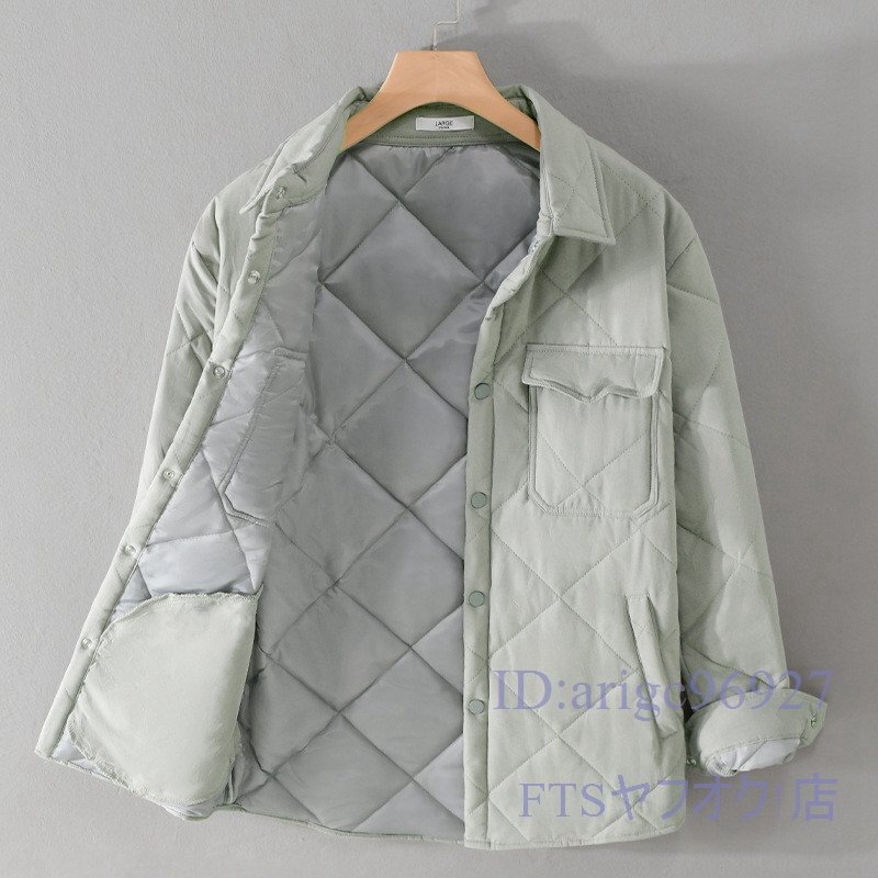 - U288☆新品中綿ジャケット シャツジャケット メンズ* ライトアウター コート 秋冬服 ジャンパー ブルゾン トップス グリーン XL