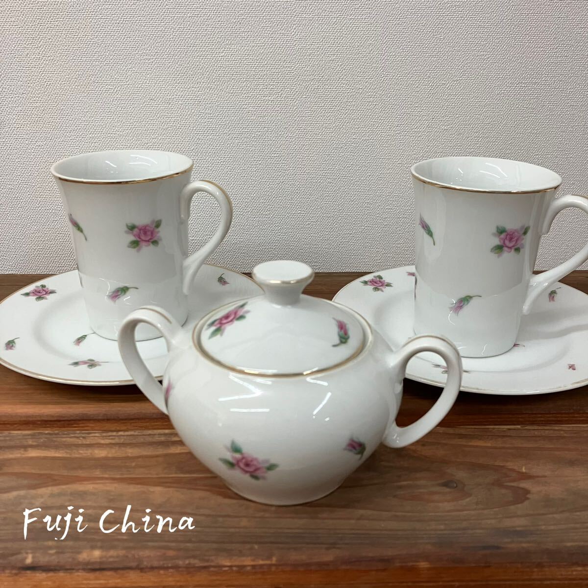 - レトロ◆ 陶器 シュガーポット カップ&ソーサー フジチャイナ Fuji China アンティーク 管S-24