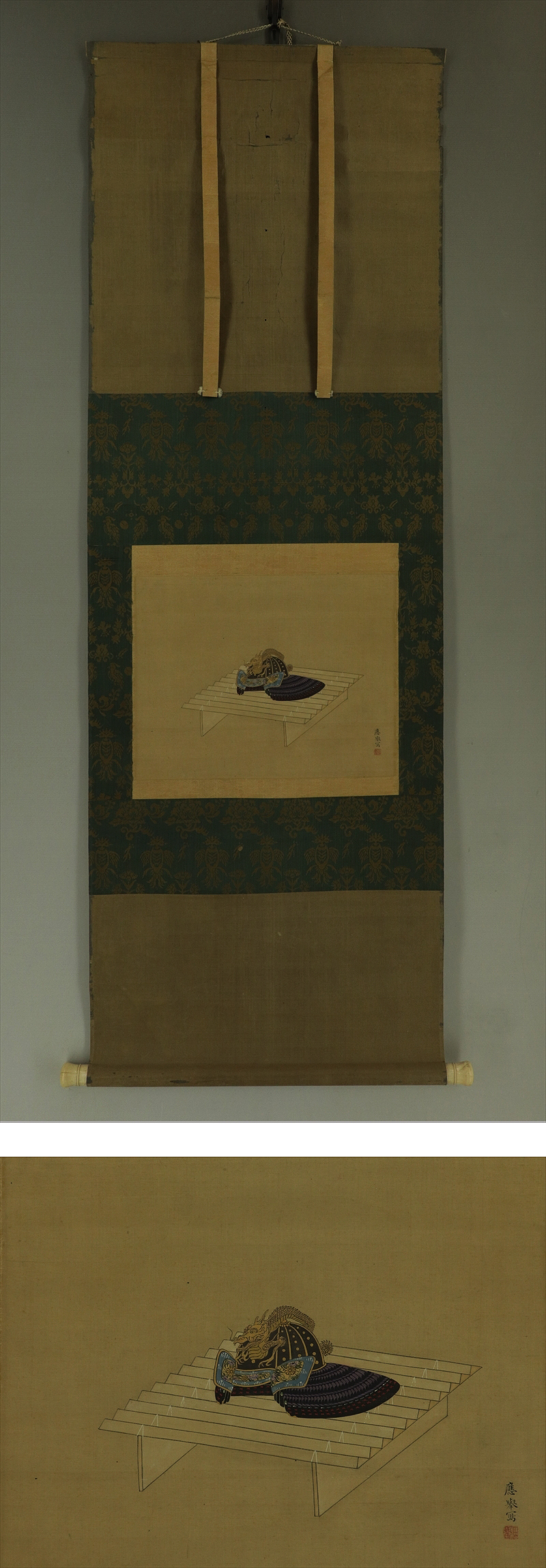 - 【模写】円山応挙【兜】◆絹本◆合箱◆掛軸 s07059