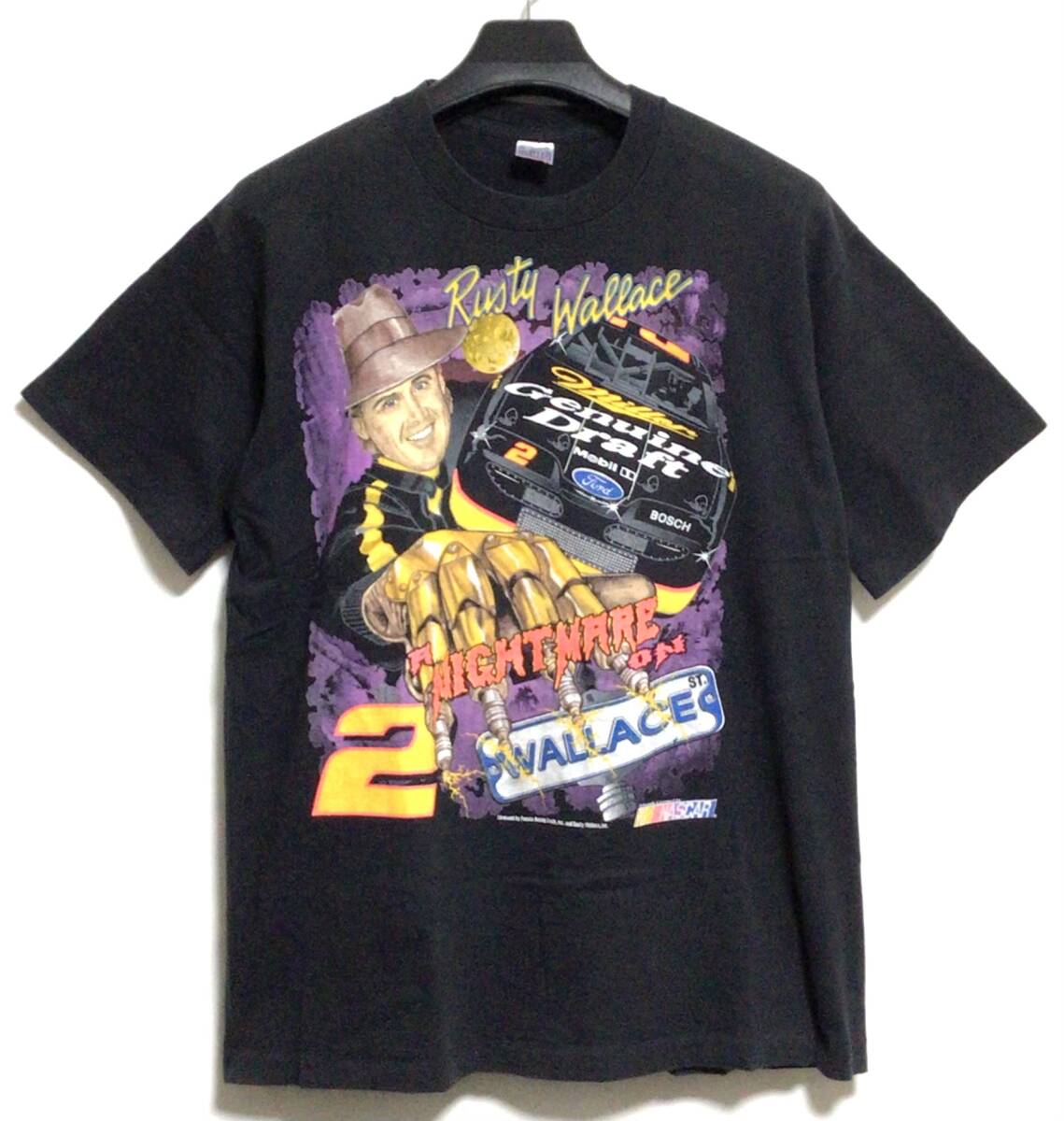 - ビンテージ 90s NASCAR RUSTY WALLACE エルム街の悪夢パロディ 1995 USA製 Tシャツ XL 黒 A NIGHTMARE ON WALLACE ST. シングルステッチ