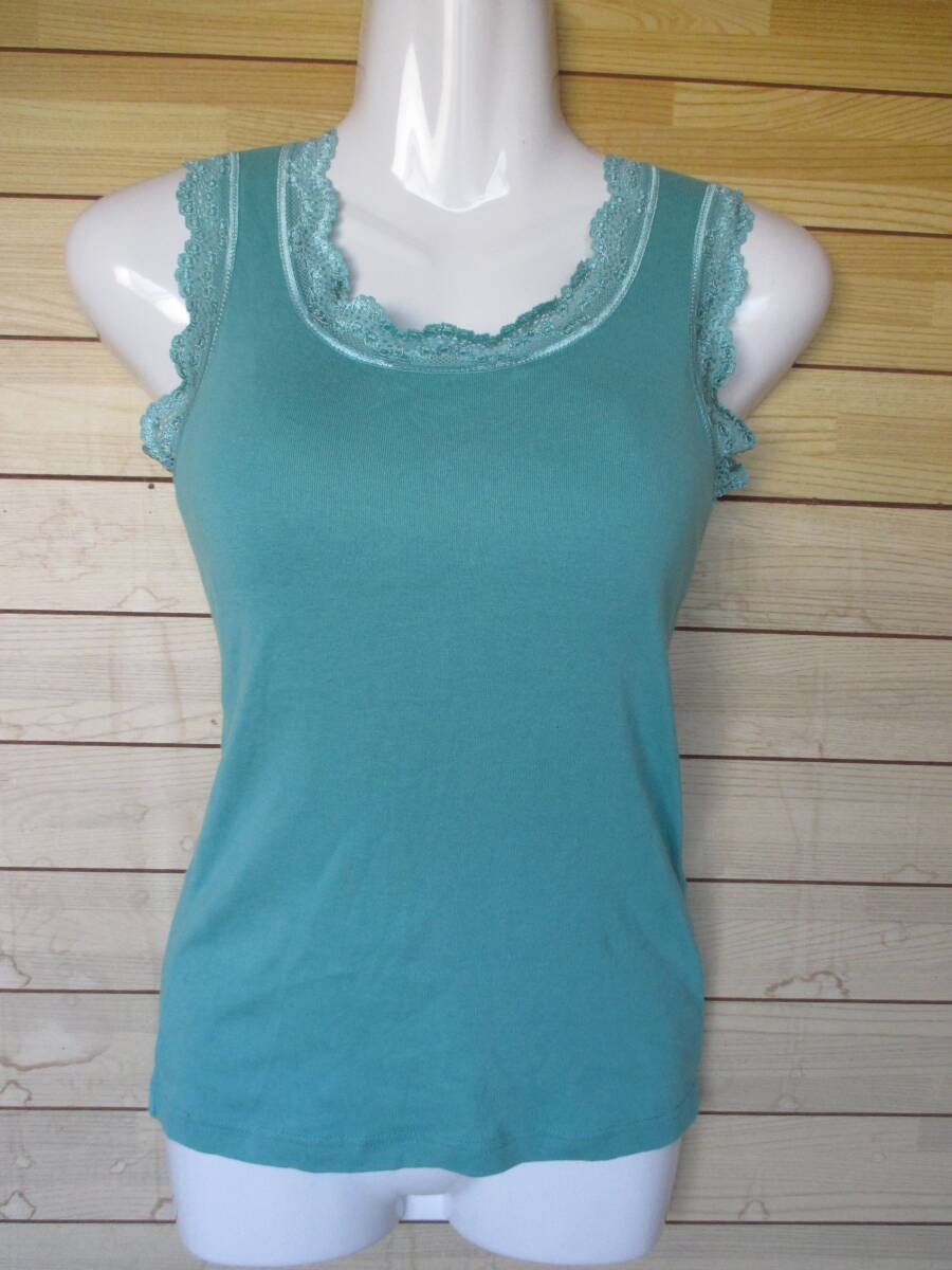 - 即決!●綿100% ノースリーブ●緑色●サイズM●パット付き