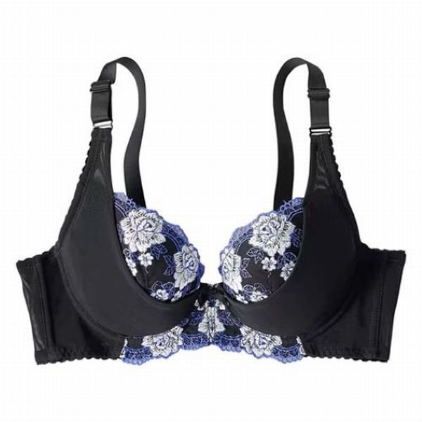 - D75 脇高背中すっきり リフトUP 胸寄せ谷間メイク 薔薇姫ブラジャー 黒