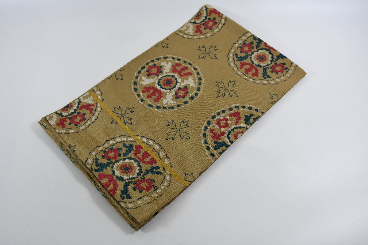 > 袋名古屋帯 丸に花柄 花繋ぎ 洋華丸絵文 正絹 帯丈408cm ★着物屋 ne-11889 桜庭呉服店