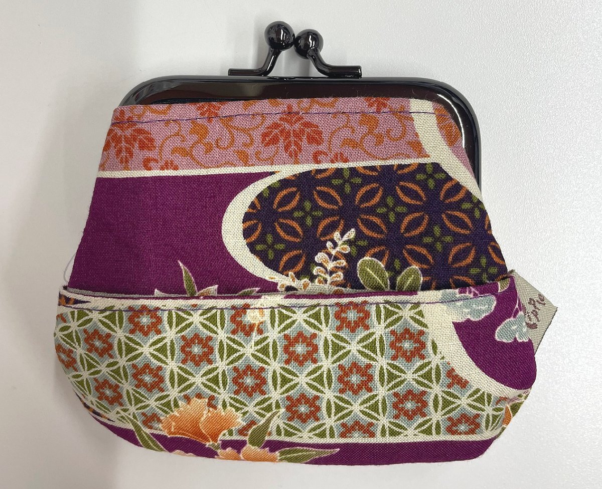 - Ripple ポケット付き 和柄 がま口財布 パープル 紫 花柄 がま口ポーチ