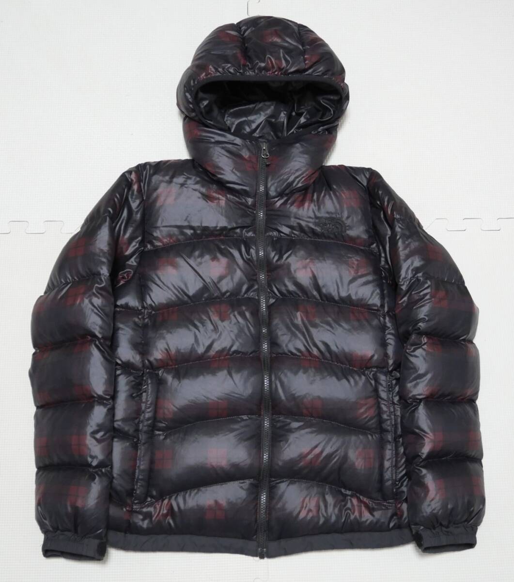 > ノースフェイス レディース アコンカグア フーディ 黒赤 チェック M ダウン ジャケット NDW18154