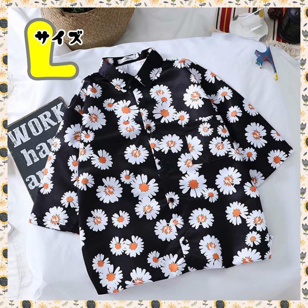- 457 花柄プリントカジュアルシャツ Lサイズ ブラック