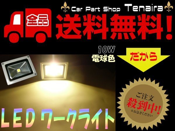 - LED 投光器 DC12V/24V 10W SMD 防水照明ライト 作業灯 電球色 暖色 ウォームホワイト 送料無料/6