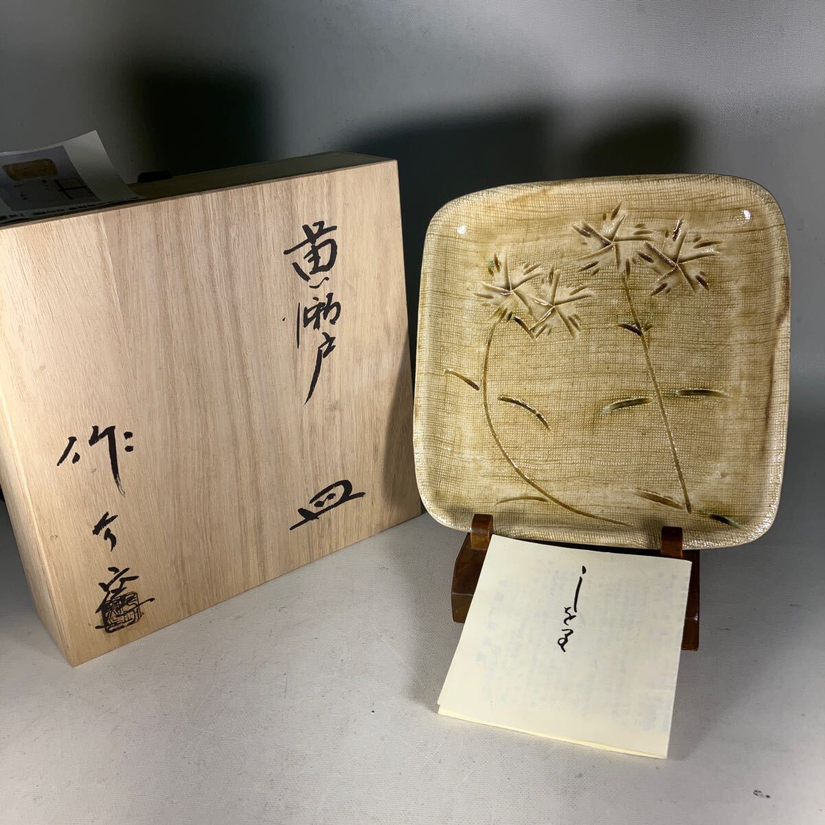 - 加藤圭史造 五代作助指導 黄瀬戸皿 作介窯 共箱 栞