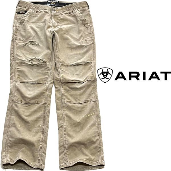 - 1点物◆ボロボロ雰囲気系ダメージARIATペインターパンツ古着メンズ34レディースOKアメカジ90sストリートスポーツダック茶クラッシュ373409