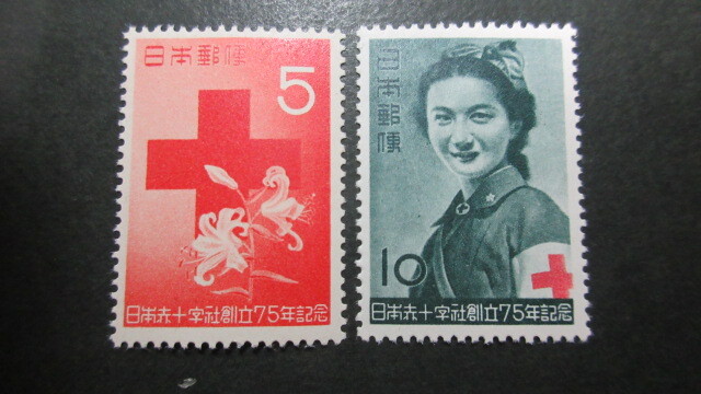 - 【記念切手】記227~228 日本赤十字社創立75年記念 (2種完)