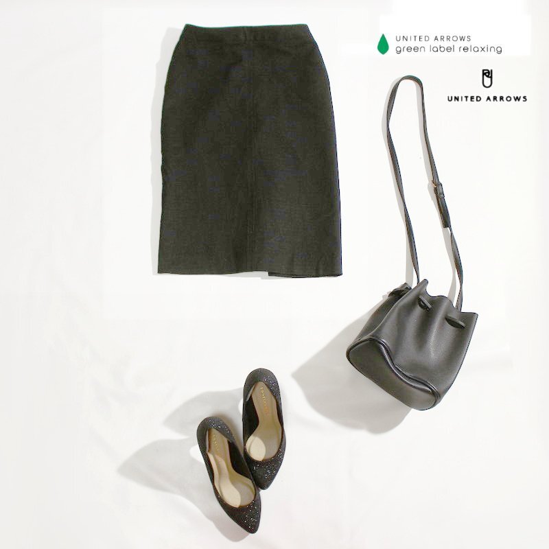 - 美品 ユナイテッドアローズ グリーンレーベルリラクシング 定番 秋 冬 毛 ウール混合 シンプル 膝下丈 タイトスカート 7号 36 ブラック 黒