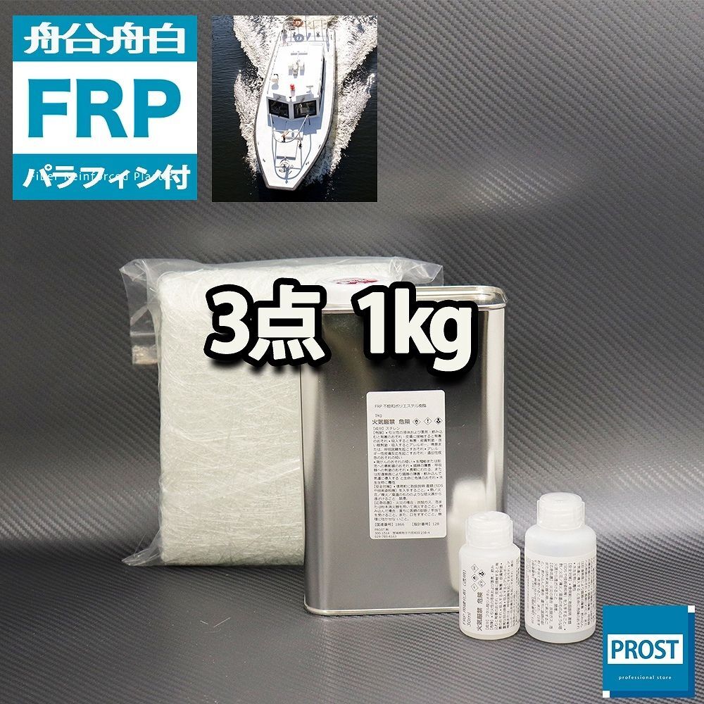 - 船・ボート専用 FRP補修3点キット 樹脂1kg ノンパラフィン(パラフィン付き) 硬化剤 ガラスマット付 Z25