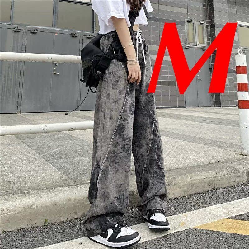 - ワイドパンツ ボトムス タイダイ柄 ルーズパンツ ワイドレッグパンツ グレー パンツ レディース フレアパンツ ワイド グレー M