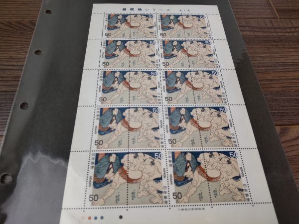 - S-385 日本 切手 相撲絵シリーズ 第5集 50円切手 1シート 20枚 昭和 コレクション 未使用 コレクター 収集 シート 送料無料