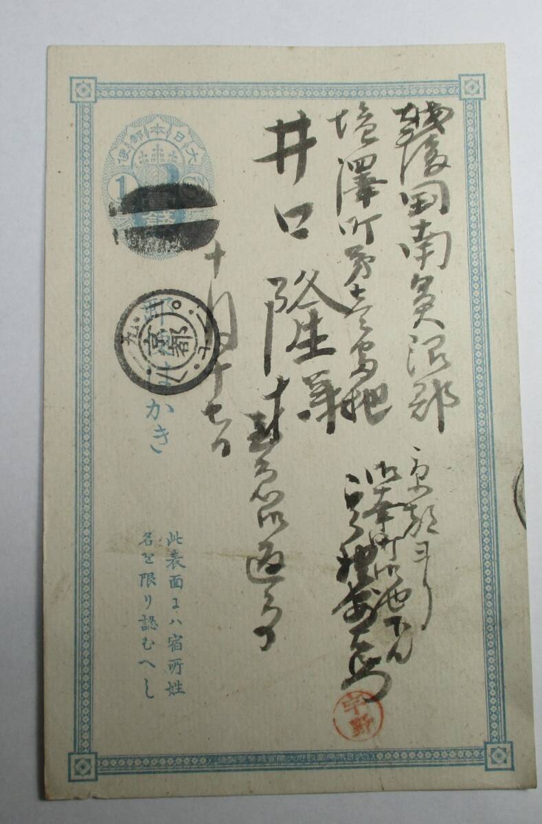 - K-161 古いはがき 小判1銭はがき 京都 明治19年10月17日 ボタ印