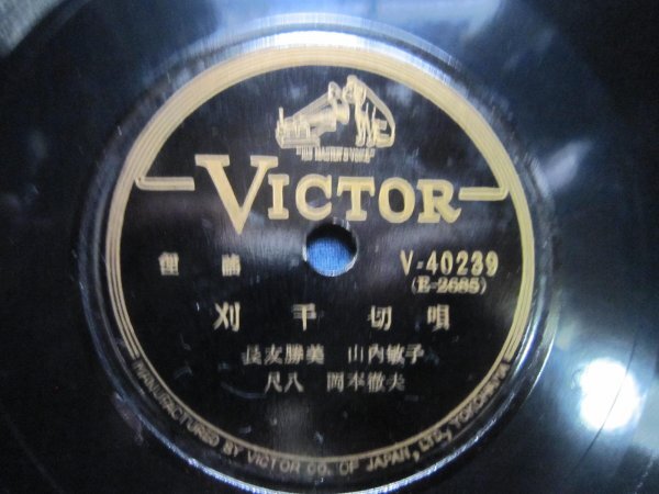 - 芸SP盤2278★民謡★長友勝美、山内敏子/刈干切唄・稗搗節★美麗盤。ビクター俚謡SPレコード