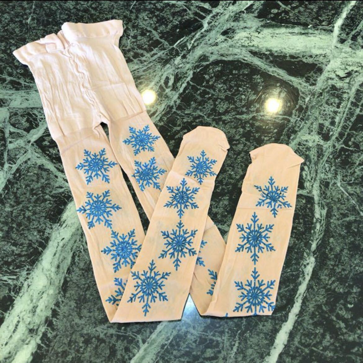 - 【新品】雪の結晶柄タイツ★ストッキング タトゥータイツ グリッターカラー 水色 パンスト 冬 コスプレ イベント クリスマス M〜L