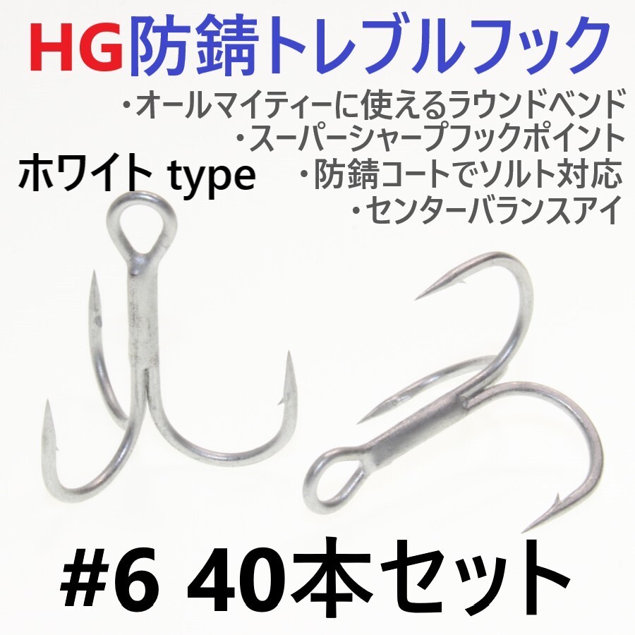 - 【送料150円】ハイグレード防錆トレブルフック ホワイト#6 40本セット 高品質ルアーフック がまかつトレブル13好きに