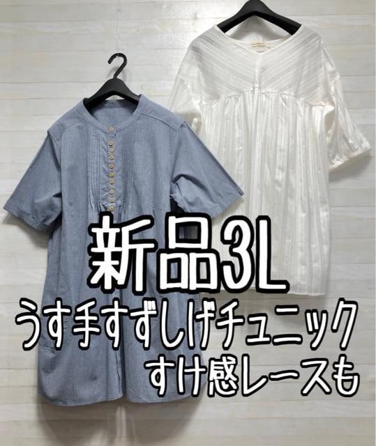 - 新品☆3L♪涼しげチュニック2枚セット♪ナチュラルにもカジュアルにも☆f111