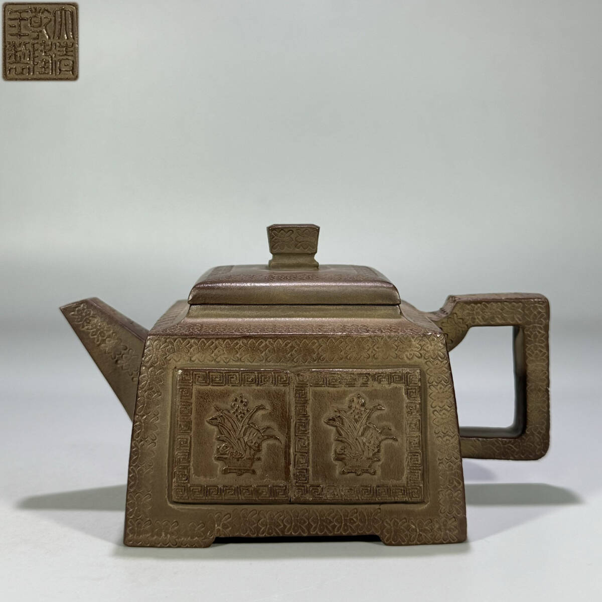 - 古陶芸 紫砂壷 清時代 乾隆年製 「升方壺」 段泥 全手作 煎茶 急須 茶道具 唐物 時代物 茶器 容量320cc LT-241017