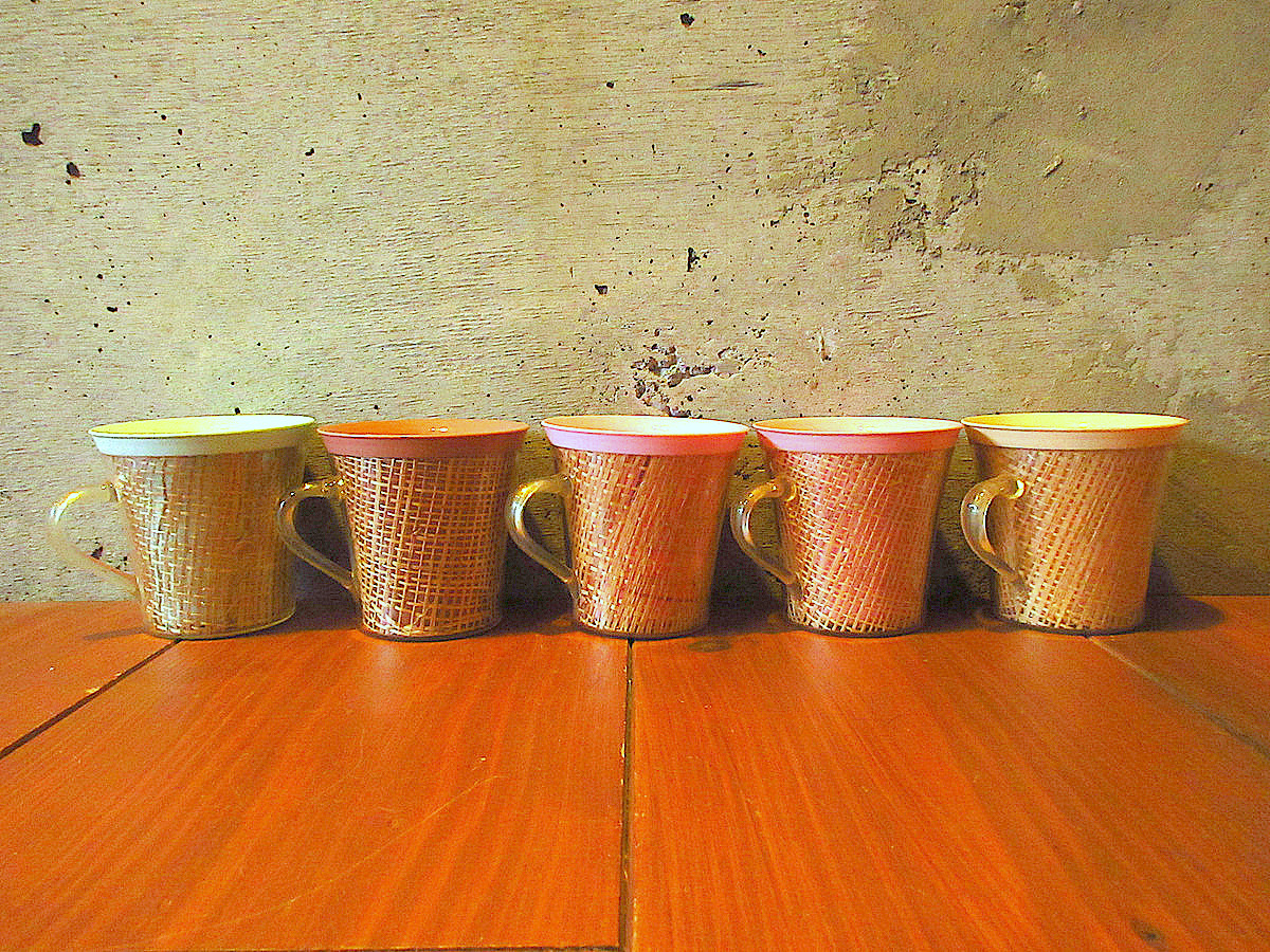 - ビンテージ50’s60’s●メルマック製ラフィアマグ5点セット●241003k6-tbwr1950s1960s食器マグカッププラスチック