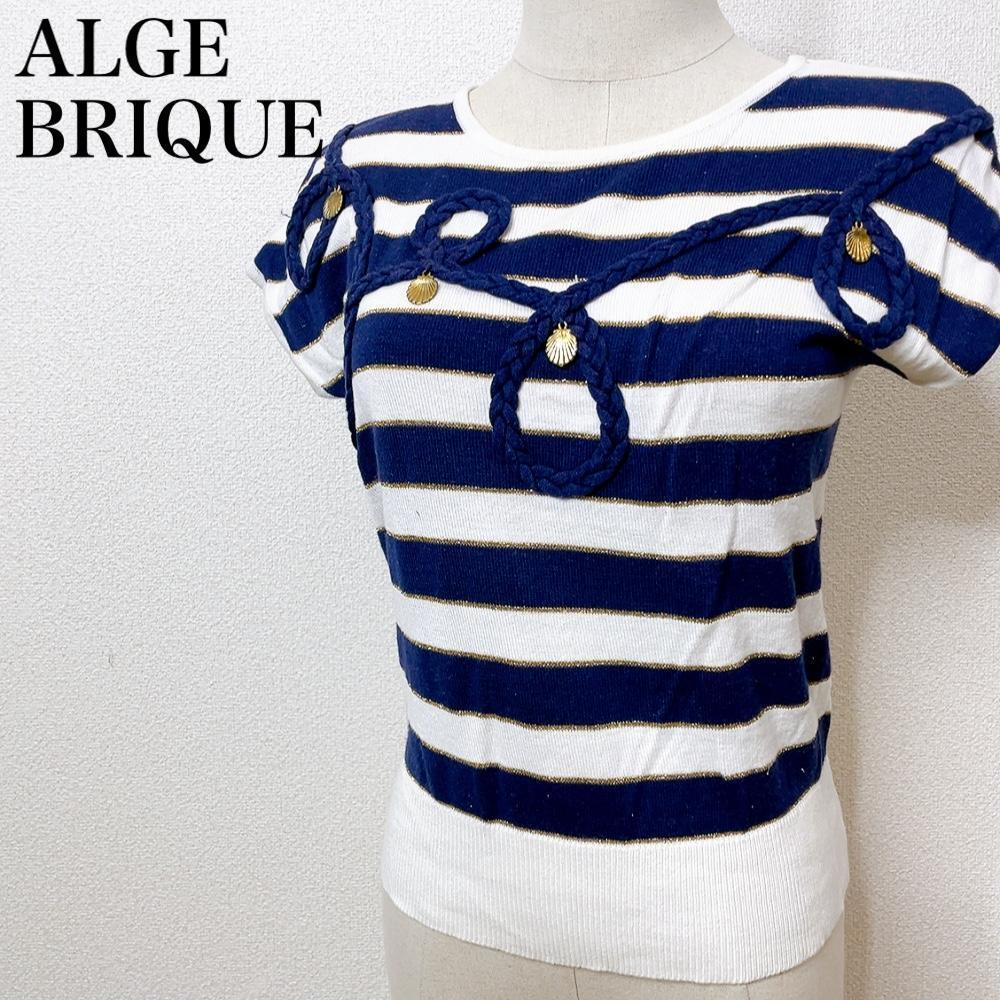 - Alge Brique アルジェブリック カジュアル 爽やか ストレッチ 半袖 ボーダーカットソー マリンテイスト ラメ ネイビー ホワイト む09