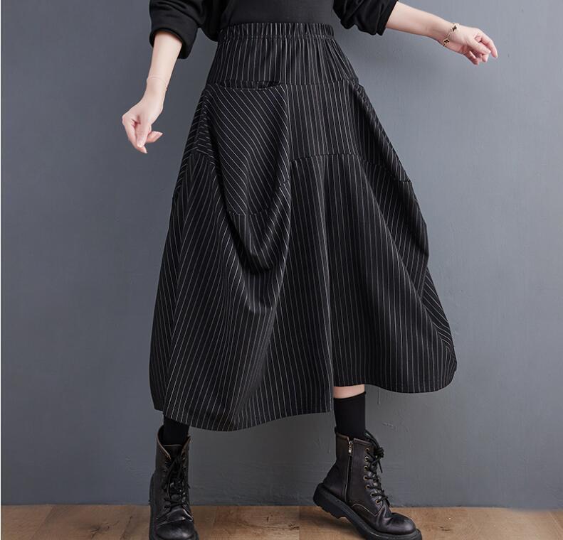 - 新入荷通勤 秋冬 上質 カジュアル ボーダー柄 ワイドパンツ 大きいサイズ ウエストゴム ガウチョパンツ サルエルパンツF