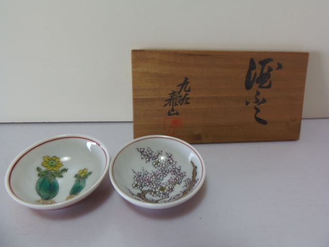 - k11 【九谷焼 九谷泰山】 酒盃 猪口 組盃