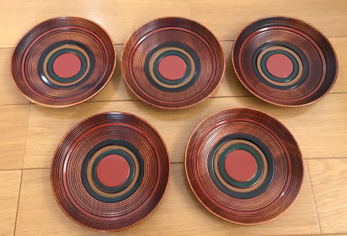 - 山中漆器 独楽塗り 菓子器 天然木 5枚セット 未使用品