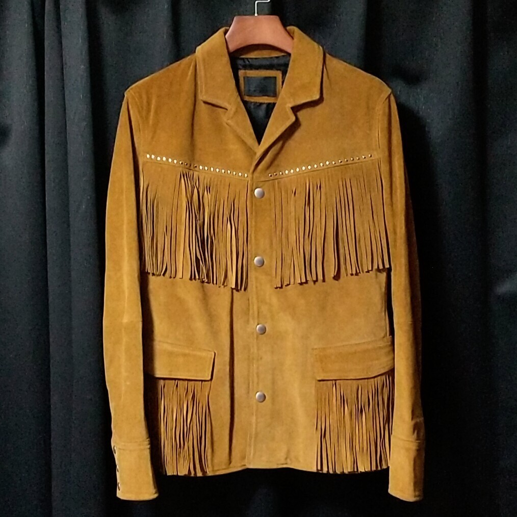 > DIESEL BLACK GOLD レザージャケット スタッズ フリンジ ブラウン ウエスタン スウェード イタリア製 46 ライダース CELINE SAINT LAURENT