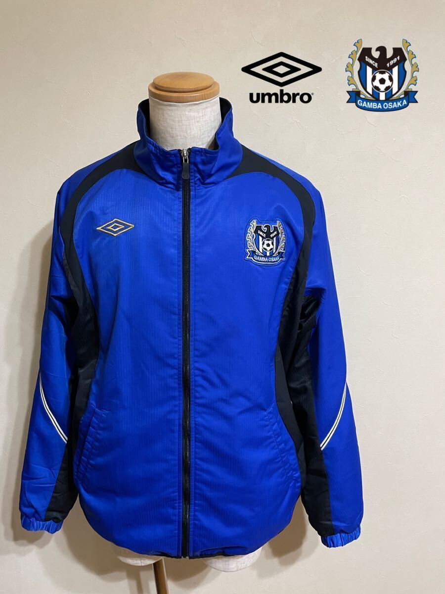 > 【美品】 アンブロ ガンバ大阪 防寒 ウインド ジップ ジャケット Jリーグ トップス サイズXO 長袖 青黒 裏起毛 日本製 UG04034A