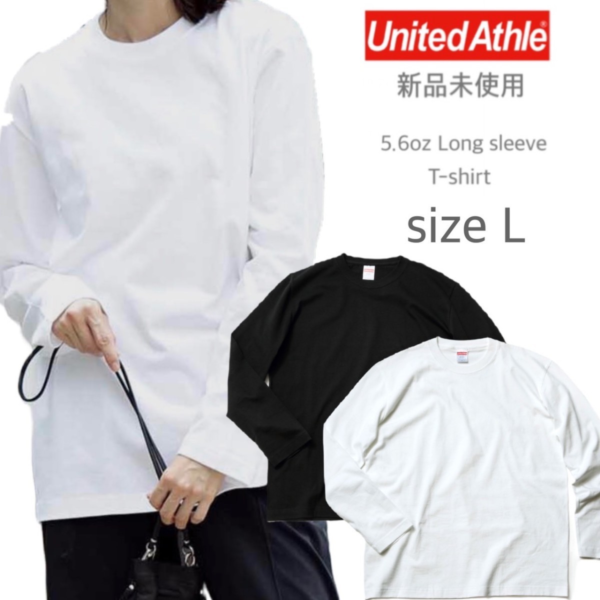 > 新品未使用 ユナイテッドアスレ 5.6oz 無地 ロンT 白 黒 2枚 L ホワイト ブラック 長袖Tシャツ United Athle 501001