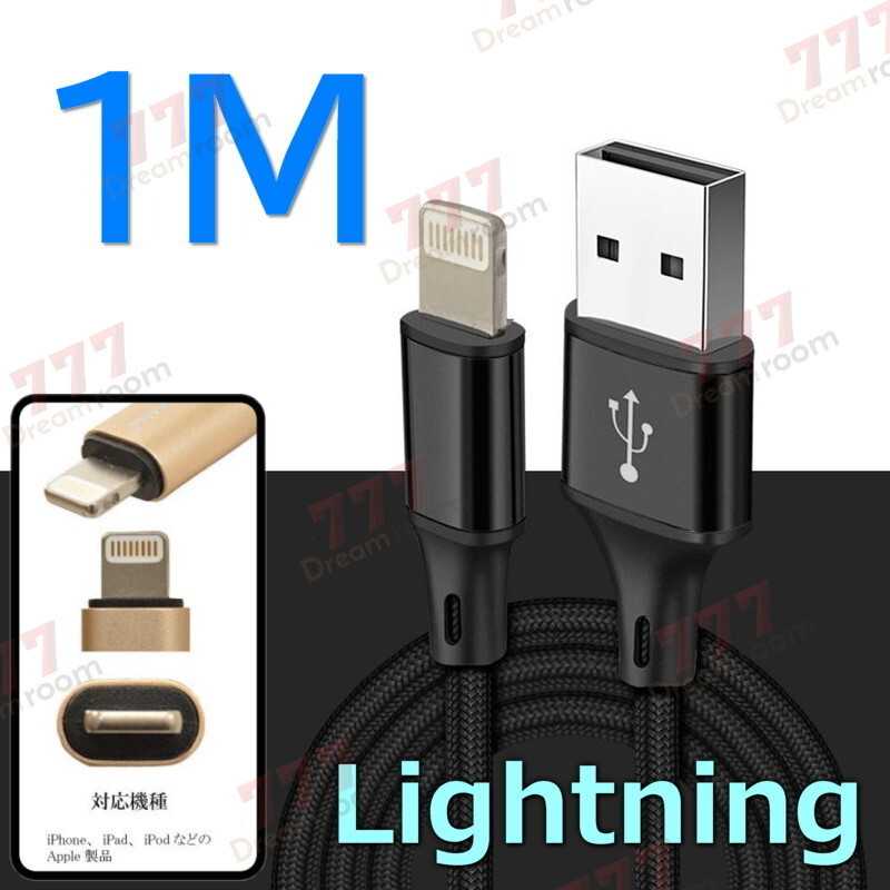- 【 1M 】 断線防止 充電ケーブル iPhone ブラック 充電 急速充電 ライトニング USB2.0 ケーブル 高耐久ナイロン 充電器 アダプタ